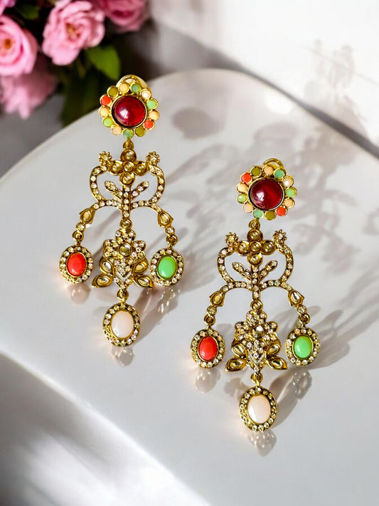 Majestic Multi-Gem Jhula Chandbali Earrings