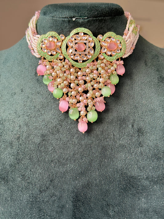Vidya Pachi Kundan CZ choker set