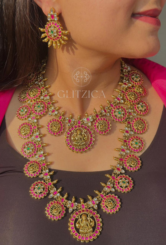 Long Meenakshi Jadau Antique Necklace Set