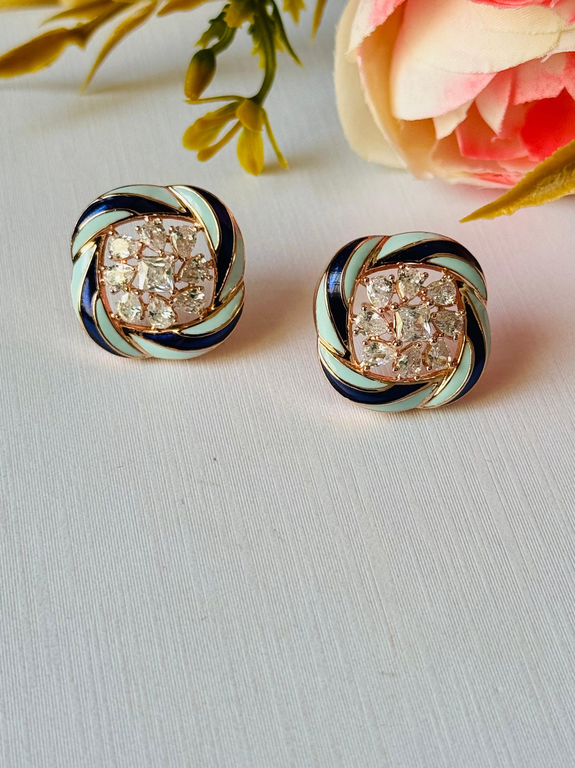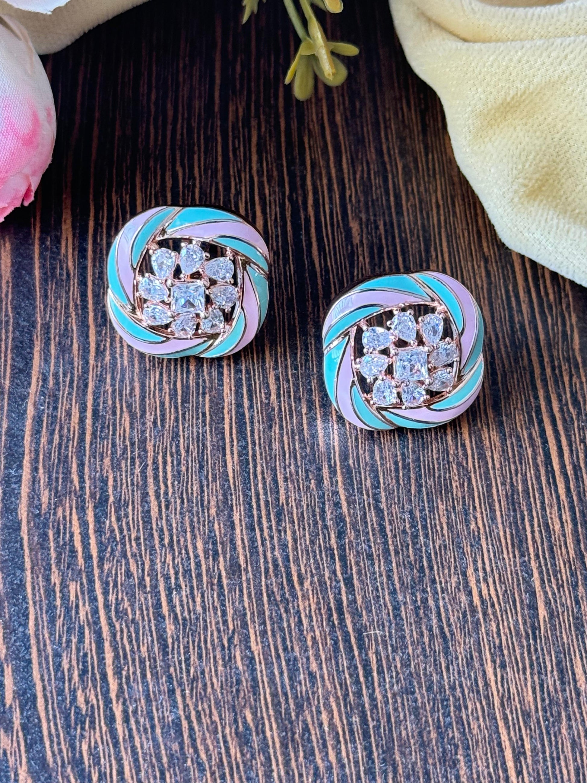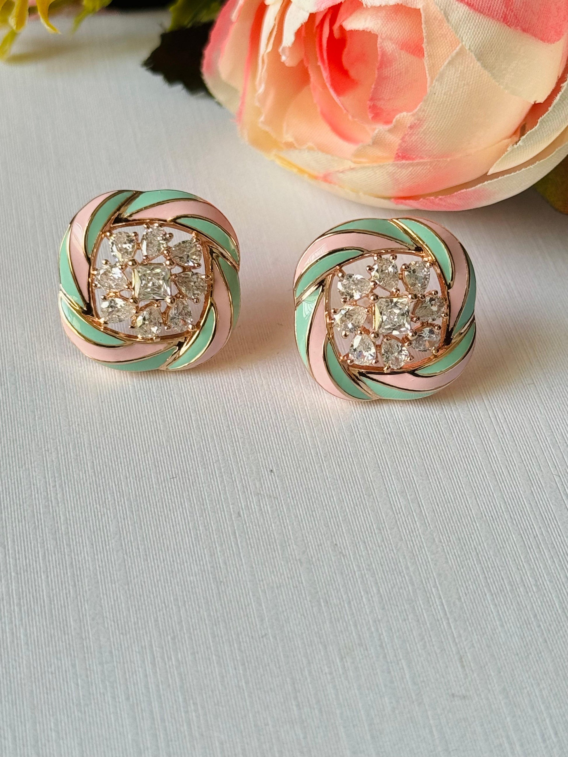 Enhance your elegance with our stunning Meenakari CZ Stone Stud Earrings. These exquisite earrings are adorned with brilliant cubic zirconia (CZ) stones, meticulously set to create a sparkling centerpiece. The intricate Meenakari work, available in three captivating color combinations, adds a touch of traditional artistry to these modern accessories.