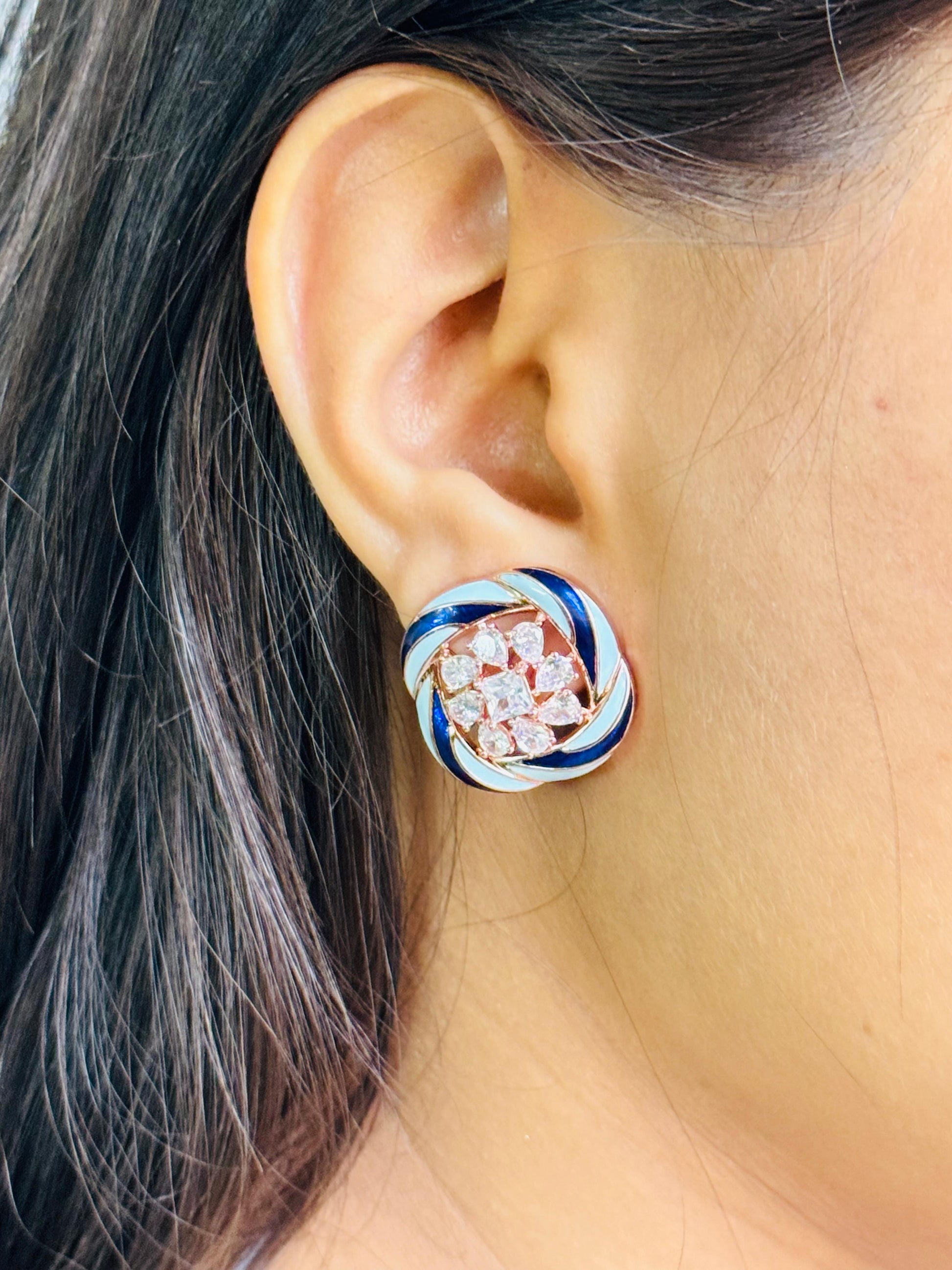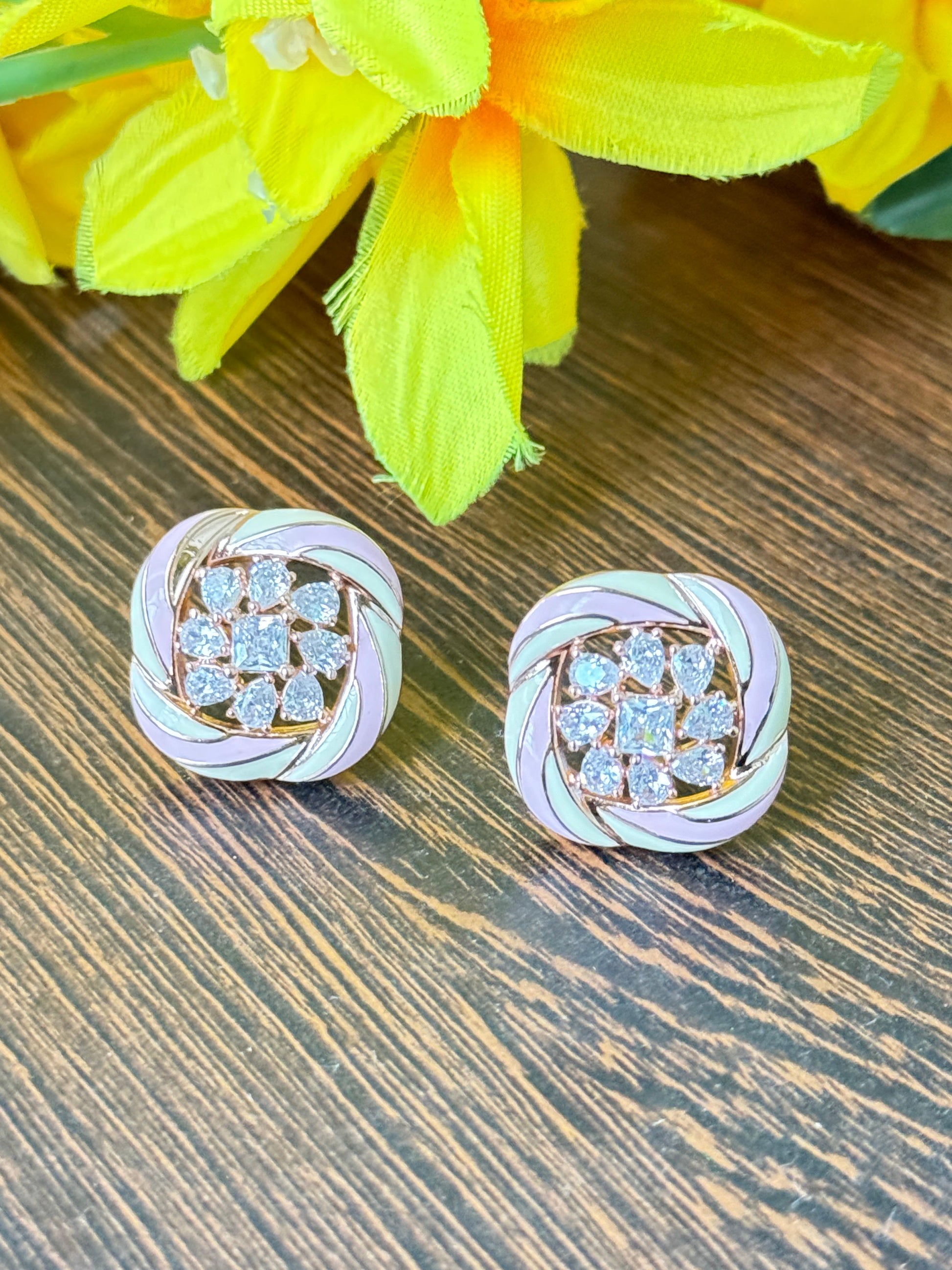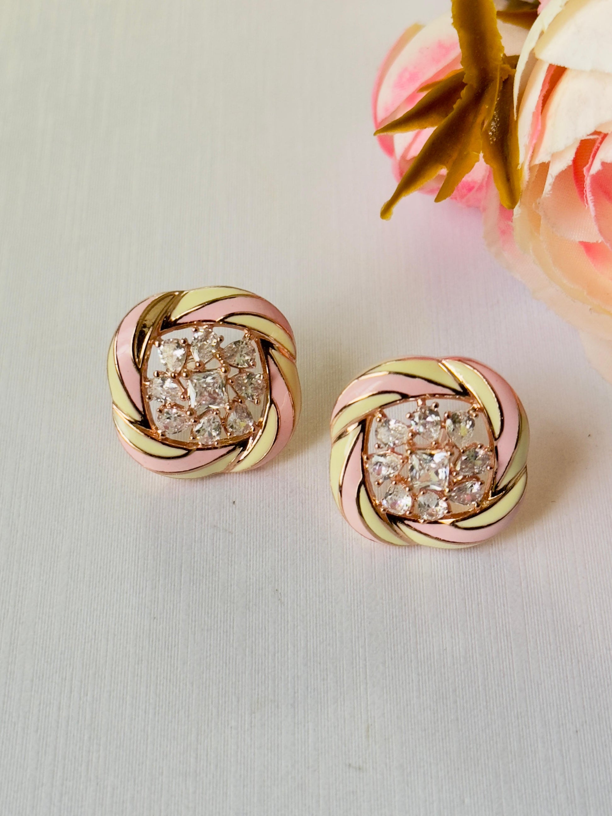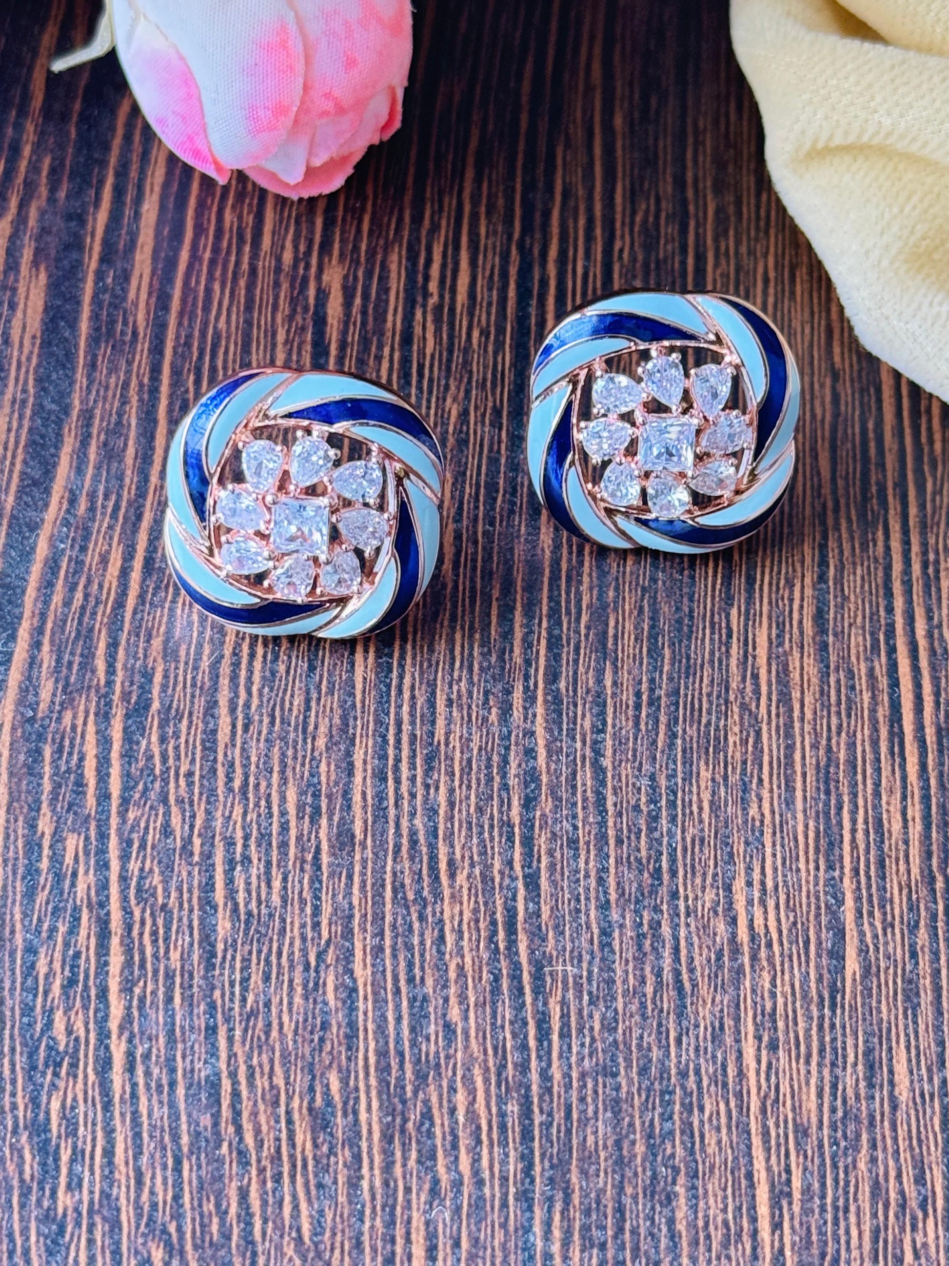 Enhance your elegance with our stunning Meenakari CZ Stone Stud Earrings. These exquisite earrings are adorned with brilliant cubic zirconia (CZ) stones, meticulously set to create a sparkling centerpiece. The intricate Meenakari work, available in three captivating color combinations, adds a touch of traditional artistry to these modern accessories.