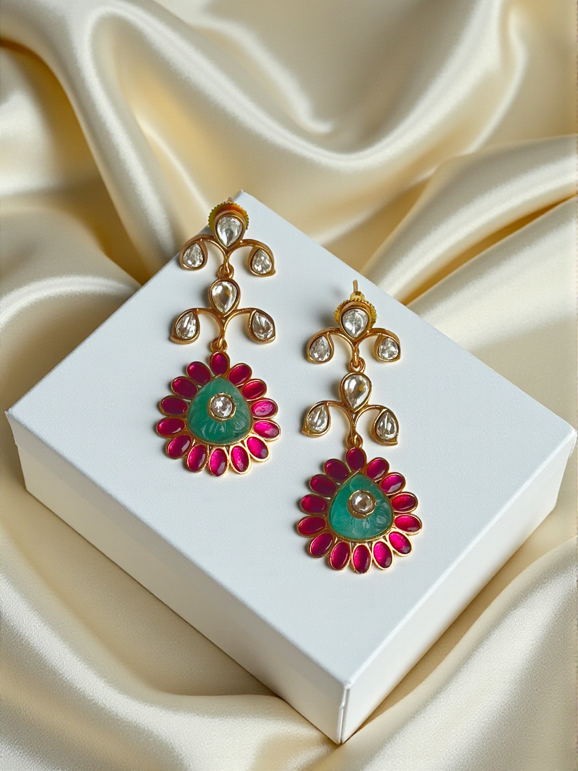 I love the colorful Meenakari work on this necklace! patterns add a unique touch, and i pair it with my saree. It’s a great piece for festive look.