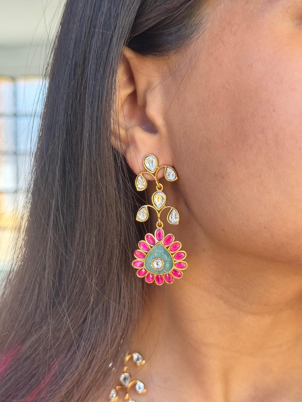 I love the colorful Meenakari work on this necklace! patterns add a unique touch, and i pair it with my saree. It’s a great piece for festive look.