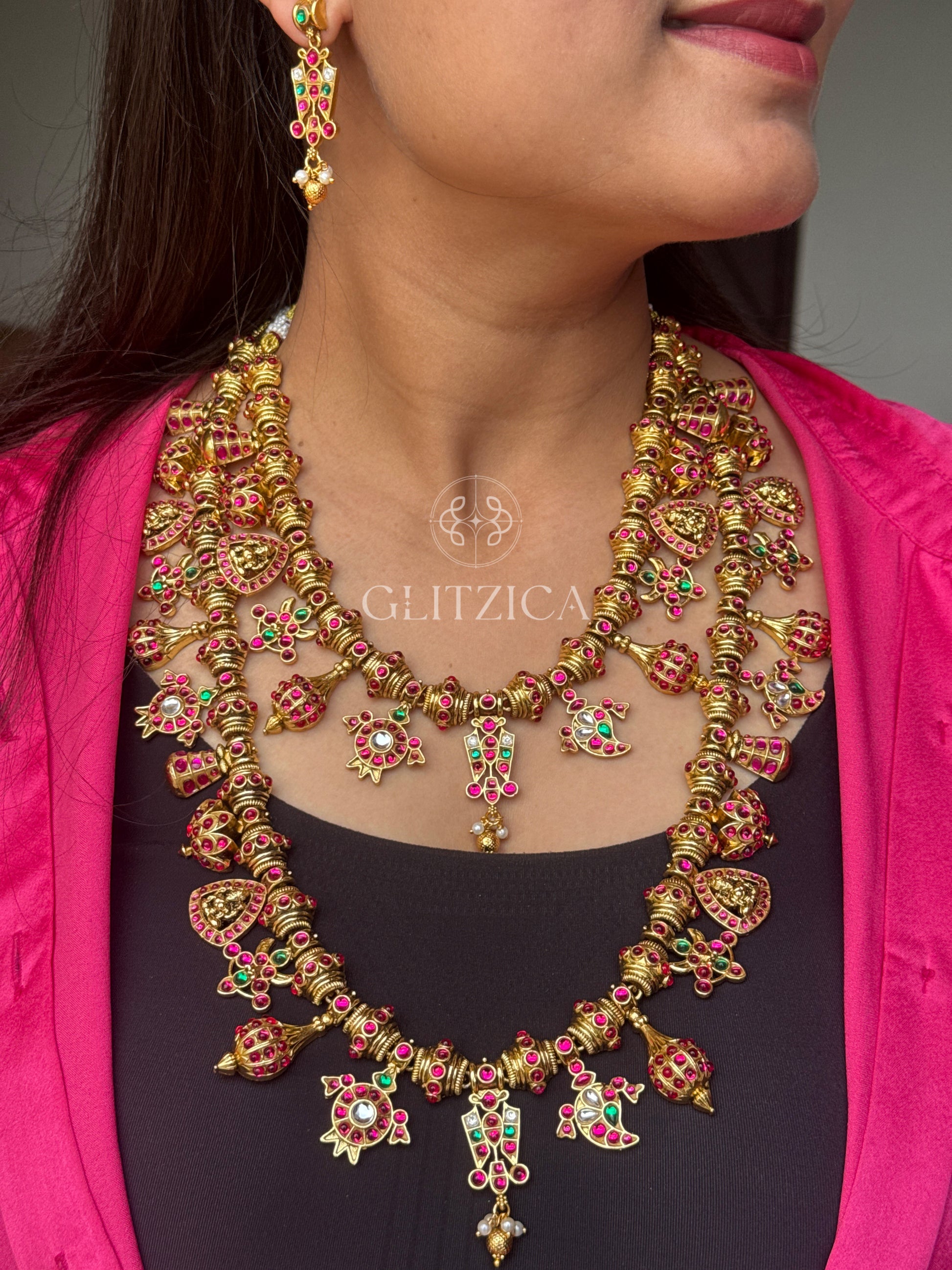 Paired with matching earrings, this set is perfect for weddings, festive celebrations, and bridal occasions.