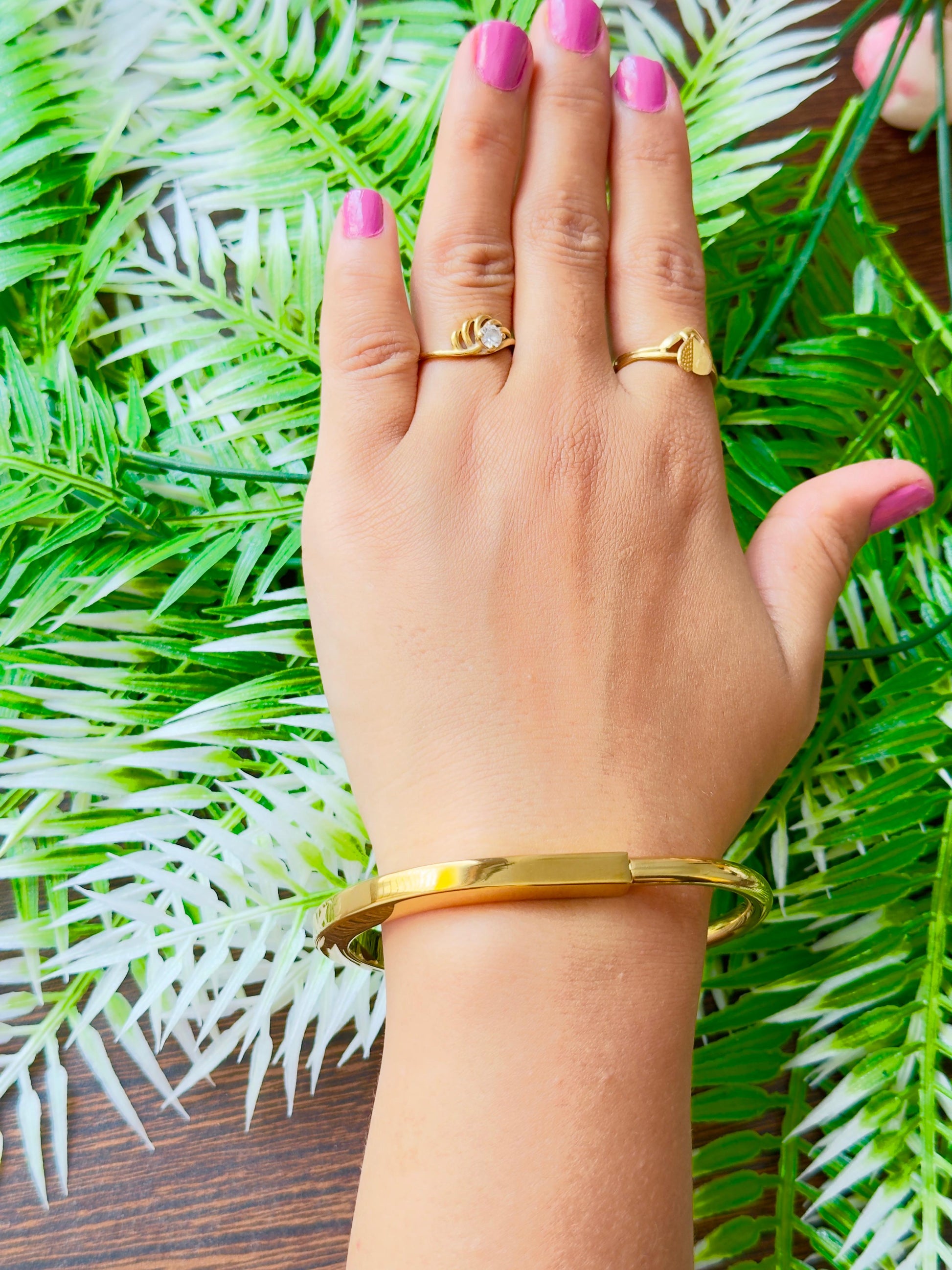 Add a touch of sophistication to your accessories with this exquisite gold-plated anti-tarnish tala bracelet. Designed for both elegance and durability, this piece features a sleek and minimalist Lock design that complements any outfit.